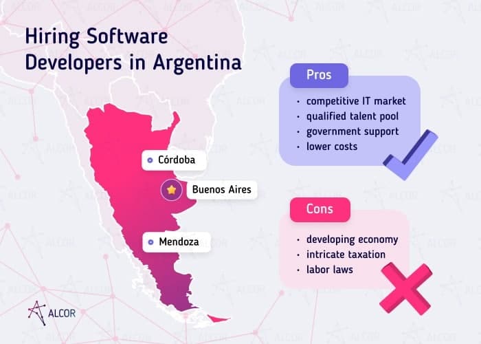 I’ll begin by drawing up a list of the pros and cons of hiring in Argentina to give you the bigger picture. Here are the key features of this country: