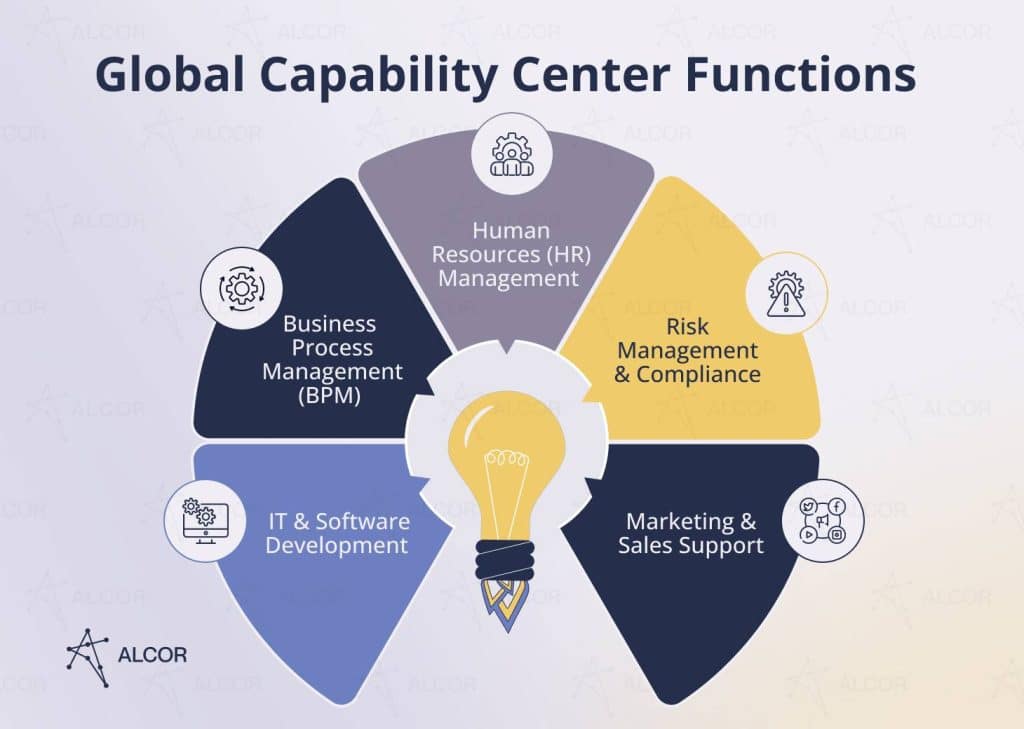 - A Global Capability Center is your dedicated nearshore/offshore hub that centralizes engineering, IT, BPM/back office, HR ops, risk & compliance, and go-to-market support under one governance model.