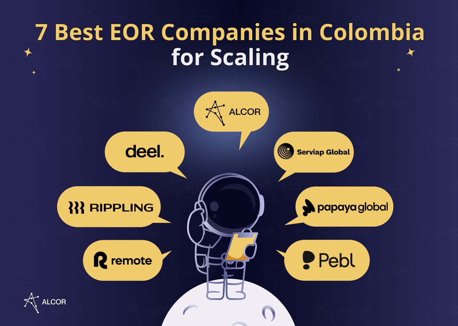 - The list of the best Employer of Record services providers in Colombia includes Alcor, Deel, Remote, Papaya Global, Serviap Global, Rippling, and Pebl (formerly Velocity Global).