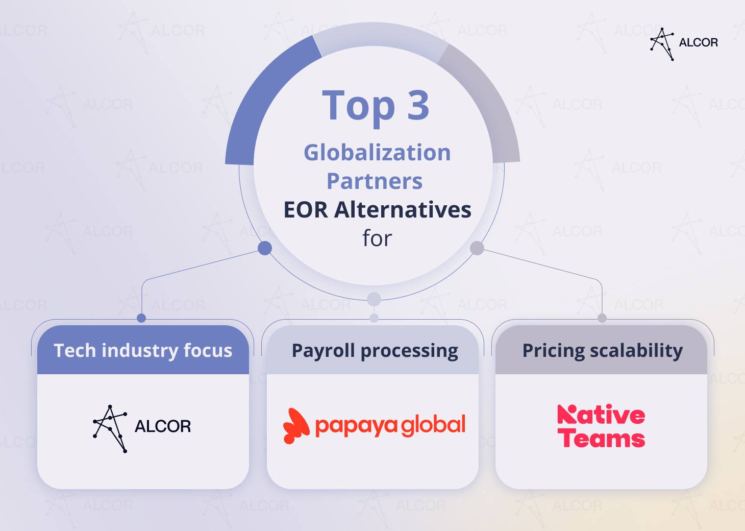 - The top 3 Globalization Partner alternatives for specific EOR capabilities are: