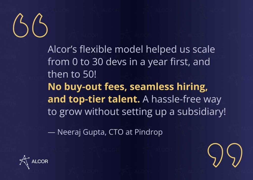 I’m David Gomez, Lead IT Recruiter in LATAM at Alcor. With our software R&D center solution, tech companies scale their teams from 10 to 100 elite software engineers in a year. We provide the perfect mix of top-notch recruitment, full EOR coverage, and 100% operational support across Latin America and Eastern Europe – all with no legal entity needed!